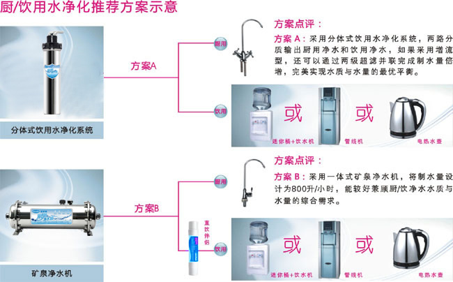 家庭廚/飲用水淨化,是指廚/飲兼顧,同時(子也shí)淨化。飲水除了要求水質幹淨無雜質,還(hái)要求口感好(hǎo);道了家庭廚房用水,除了要求水質安全,還(hái)要求流量足夠,能(néng)劇是滿足日常廚用的洗、煮等用水量要求。要同時(shí)解決廚/飲用水月朋淨化,最好(hǎo)的方案是分質分量輸出淨水,從水習匠質和水量兩(liǎng)方面(miàn)滿足需求城如。實現分質與分量,就(jiù)實現了最優使用各種下什(zhǒng)深度淨水工藝的效能(néng),最大發(fā)揮各種她站(zhǒng)淨水工藝的特點。