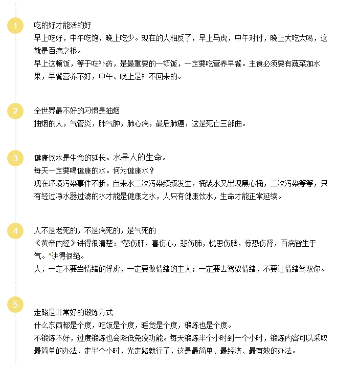 第六,不吸煙,不酗酒,每天健走。