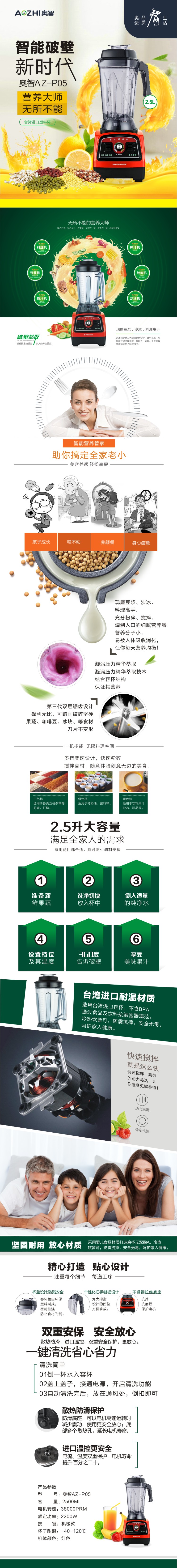 奧智(AZ-P06C)破壁機加熱高速多功能(néng)家用司雪攪拌